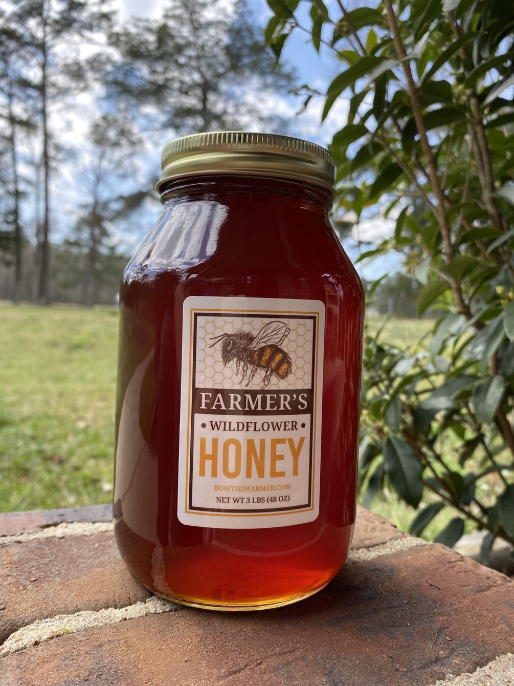 Premium raw wildflower honey, 100% pure unpasteurized, chemical free. Quart size glass jar.