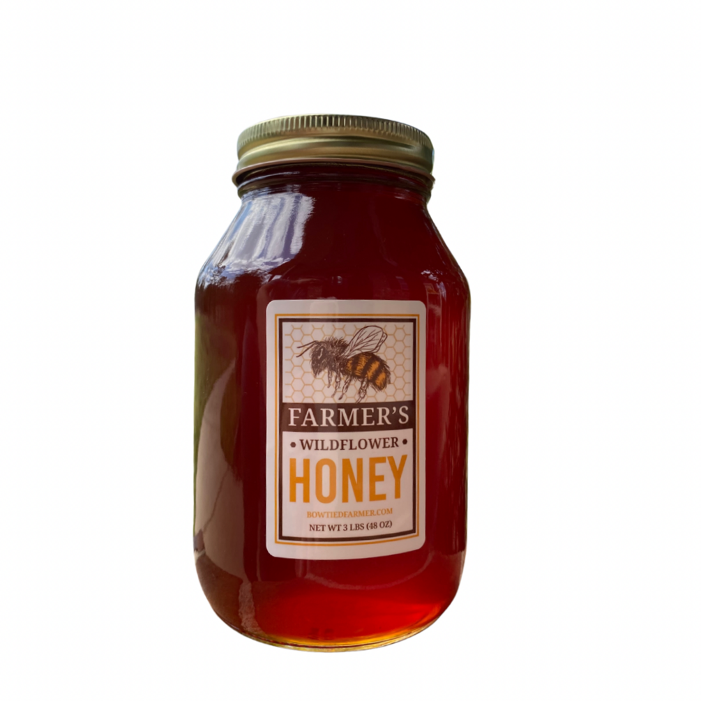 Premium raw wildflower honey, 100% pure unpasteurized, chemical free. Quart size glass jar.